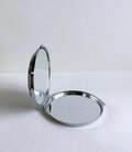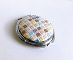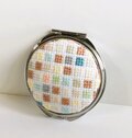 白のクロスステッチ布地に刺繍を施したコンパクトミラーです。