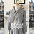 モノトーン・ツイード調リネンの襟付きボレロ『ショートジャケット・ハオリモノ』