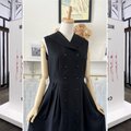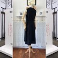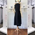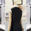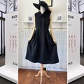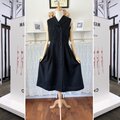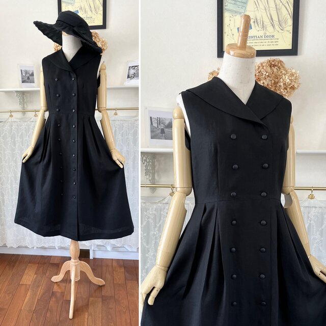 黒リネンのクラシカルな襟付きワンピース『イリス』ノースリーブ・ショールカラー・タックスカート・ロング・シック