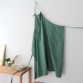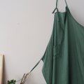 ハーブのバジルのような鮮やかなグリーンのリネンで仕立てた、丈約103cmと長めのエプロン。