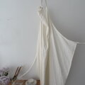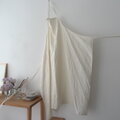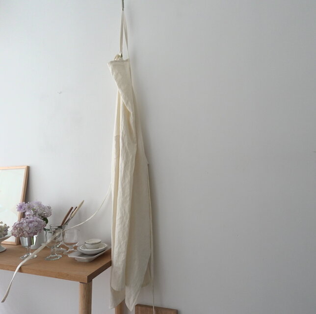 初夏に咲くアジサイアナベルのような柔らかなオフホワイトのリネンで仕立てた、丈約104cmと長めのエプロン。