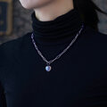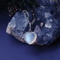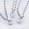 大粒ロイヤルブルームーンストーンのハートとサージカルステンレスのネックレス ~清(さや)か