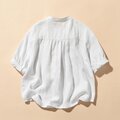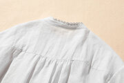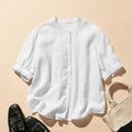 上品な着こなしに♪ リネン100% バンドカラーシャツ リネンブラウス 半袖シャツ ホワイト 250509-1
