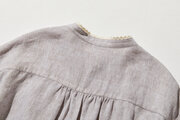 上品な着こなしに♪ リネン100% バンドカラーシャツ リネンブラウス 半袖シャツ 紫がかった灰色 250509-2