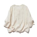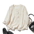 優雅で快適な七分袖レースカーディガン 刺繍コットン100% ベージュ 250511-2