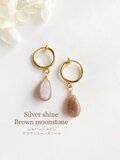 宝石質シルバーシャイン・ブラウンムーンストーン 16kgpフープイヤリング ac/191