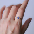 伏せこみで石留をしているのでつるりとつけやすく、着用するとサファイアの色がワントーン抑え目に見えるので全体的にシックでスタイリッシュなイメージでつけていただけると思います。