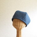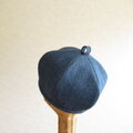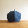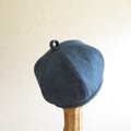 綿麻のスラブデニムで作った、6枚はぎのベレー帽です。