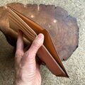 カードポケットはピッタリサイズで作っていますので、最初はきつく感じると思いますが、革は入れる物に合わせて馴染んでいきます。最初からゆとりがあるとカードが落ちてしまいますので。