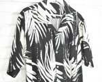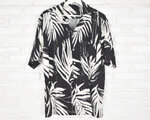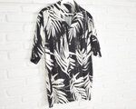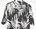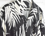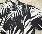 メンズヤシの葉柄オープンカラーシャツ メンズ開襟シャツ アロハシャツ ブラック