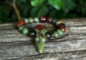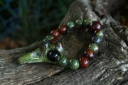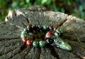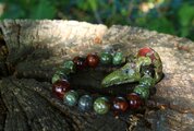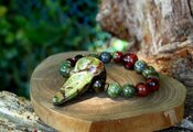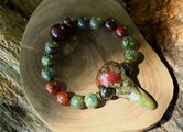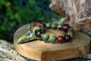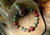 ドラゴンジャスパーは明るめの緑色に、赤や茶色の斑点や線が浮かび上がるジャスパーで、オーストラリアで産出されます。そのその緑の模様が龍の皮膚を想像させ、また赤い血液を思わせるところからドラゴンジャスパーと呼ばれています。伝説によると、死んだ古代龍の化石であるとも言われています。