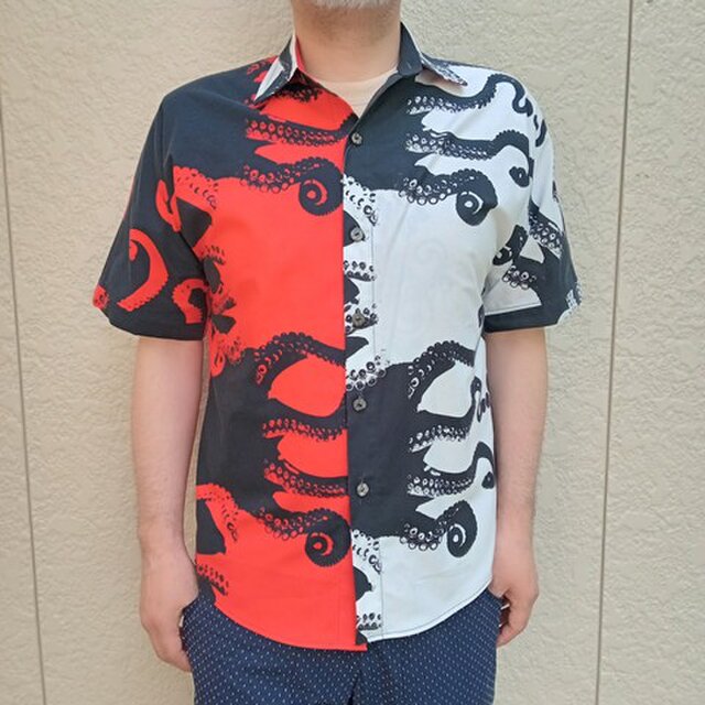 半袖蛸シャツ(騙し絵オクトパス)赤白