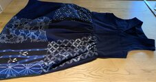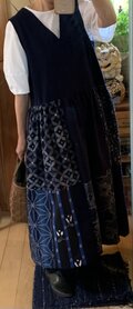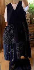数えてみたらなんと7着目。詰まった首元が好きなのですが縫製や着用時の便利さの確保の難しさからか和物生地のリメイクデザインでみかけることが少ないです。しかし今回は私の好みにベストフィットでした。長時間でも心安らかに着ていられそうです。一つ残念なのは後ろ襟元下の皺。でもプラス要素一杯なので気にしないことに。 また同じようなデザイン期待しています。