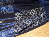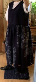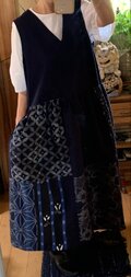 家紋古布のワンピース家紋がメインの スッキリしたデザインが とっても 素敵! 太い刺し子の糸が 家紋を 引き立てて 個性的な ワンピースの 仕上がりに。