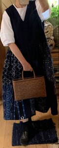スカート部分は色々な久留米絣でパッチワーク