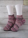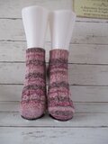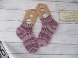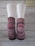 ドイツのブランド Rico Design Superba Bamboo 22 Berry Purple Mixと名前のついている糸で編んだソックスです。