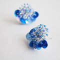 今回はシルバーベースで鮮やかなブルーの濃淡をランダムに散りばめて編んだ丸とそれに合わせた色のスパンコールを合わせました。