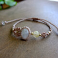 神秘的で美しい天然石がキラリと輝くエレガントで魅力的な1点ものマクラメ編みブレスレットに仕上げました。ご自分用、誕生日プレゼントギフトなどお勧めです。