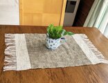 草木染め、手織ティーマット(ランチョンマッ ト茶色) 綿とリネン(少々)、26.5cm×47cm(房を含む)