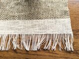 ・ジグザグもようの部分は草木染めの茶色の綿スラブと細いリネン糸(ベージュ色)を引きそろえて、斜文織りで織っています。