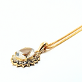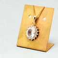 縦長に研磨されたクォーツを、細かなキュービックジルコニアで縁取ったペンダントネックレスです。
