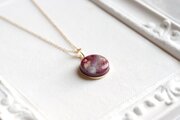 牡丹色のレジンに金箔をあしらい、ホワイトを燻らせた幽玄な雰囲気のペンダント。
