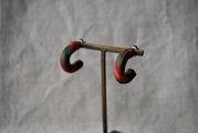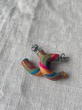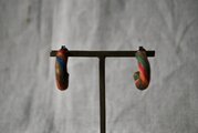 色を重ねて混ぜてマーブル模様をつくったり、削って独特のカクカクっとした形にしたり、まるっとさせたりと一点一点いろんな表情をもつ楽しいピアスです。