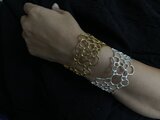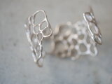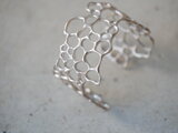 まるで金属が時間とともにやさしく溶けていくような、不定形のフォルムが印象的なバングルです。