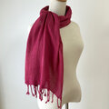 ※ ショールは、インドでざっくりと織られましたものになり、房の長さは約5cm程度ですが、長さや太さが統一されておりませんことと、織の端糸もやや緩めとなり、製品の品質を重視されます場合は、お控えいただけましたら幸いです
