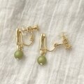 とろりと流れるメタルと、ツヤ消しマットな鶯(うぐいす)色パール1粒イヤリング No.C816