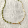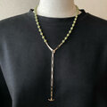 【着け方5通り!アレンジして楽しむアクセサリー、マットな鶯(うぐいす)色パールのマンテルネックレス】