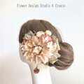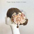 ゴールドのダリアとチュールのヘアクリップ 髪飾り 着物 髪飾り 成人式 卒業式
