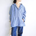 さらりと涼しげなリネン素材のフードプルオーバー