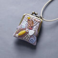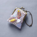 ネックレスにも、バッグチャームにも、小さな小さなビーズ刺繍のがま口 62 パープル ガーゼ アクセサリーケース