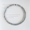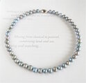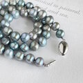 ライトブルーとライトシルバーに染められた、ポテト型のバロックパールを使用した、チョーカーネックレスです。