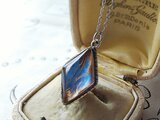 本物のモルフォ蝶の翅を閉じ込めたSilver製のアンティークペンダントです。