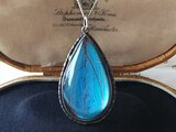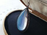 本物のモルフォ蝶の翅を閉じ込めたSilver製のアンティークペンダントです。