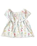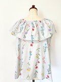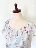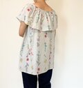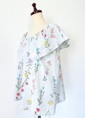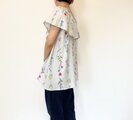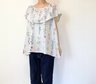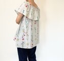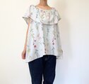 【70%OFF★期間限定セール】刺繍調*ナチュラル押し花柄*大人のフリルブラウス*国産コットンリネン綿麻*アイスグレー