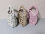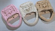 太めの糸で編んだ、ミニサイズの可愛い手編みバッグです。