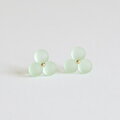 グラスグリーンの小さな粒ガラスを電気炉で溶かし合わせ、フロスト加工(艶消し)したピアスです。