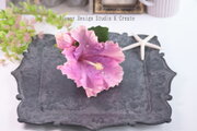 ピンクのハイビスカスと蕾と葉っぱの髪飾り フラダンス ハイビスカス Hula ピンク フラ 髪飾り ヘッドピース
