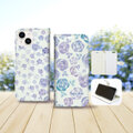 優しく淡いブルーローズ柄デザイン(スィートブルーローズデザインVer.2)のiPhone専用 手帳型スマホケース【内側色:ホワイト仕様】です。
