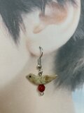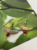 レッドコーラルを木の実に見立て小鳥が木の実を食べにやってきたイメージで製作したピアスです。