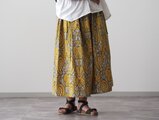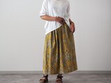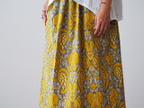 バリ島で探したグレー×イエローの華やかなバティックプリントのスカートです。