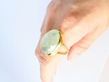 大きめのぷっくりと可愛いプレナイト。透明感がある優しさのあるプレナイトを包み込んだゴールドなシンプルデザインで美しく身に着けるだけでオシャレさが増します★