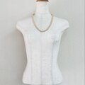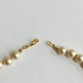 オールノットネックレスの特徴として、万が一糸が切れた場合でもばらばらにならず最小限で抑えられる点や、玉同士が密着していないので擦れあいにくく傷も付きにくい点・また玉同士が少し離れている為、首回りにフィットしやすくなっている点等がございます。この仕様は特に海外で人気があり、比較的高品質アクセサリー類によくみられる仕様です。※弊社の自社工場にて塗装したパールになります。品質の状態も維持されており、剥がれや大きな目立った傷などもございません。稀にピンホールや小さい凹み等が見られる場合がございますが、自社にて検品の上、品質に問題は無く許容範囲とさせて頂いております。