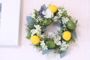 夏の雰囲気にピッタリの爽やかな黄色とグリーンのレモンと、レモンの花風に合わせた白い小花のリースが出来上がりました。