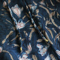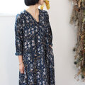 こちらは深みのあるインディゴベースに流れるようなフローラルモチーフのブロックプリント。