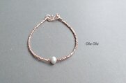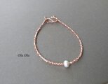 美しい光沢と、コロンとした形が可愛らしい淡水パールをアクセントに、珍しいロゼのカレンシルバーを合わせて、上品な雰囲気のブレスレットに仕上げました。