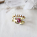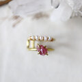 原石ピンクトルマリンとパールの2連イヤーカフ